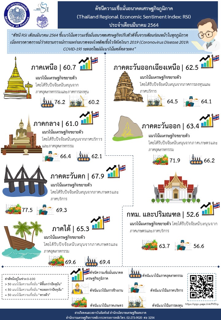 แถลงข่าว กค. ฉบับที่ 070/2564 เรื่อง ดัชนีความเชื่อมั่นอนาคตเศรษฐกิจภูมิภาค (Thailand Regional Economic Sentiment Index: RSI) ประจำเดือนมีนาคม 2564