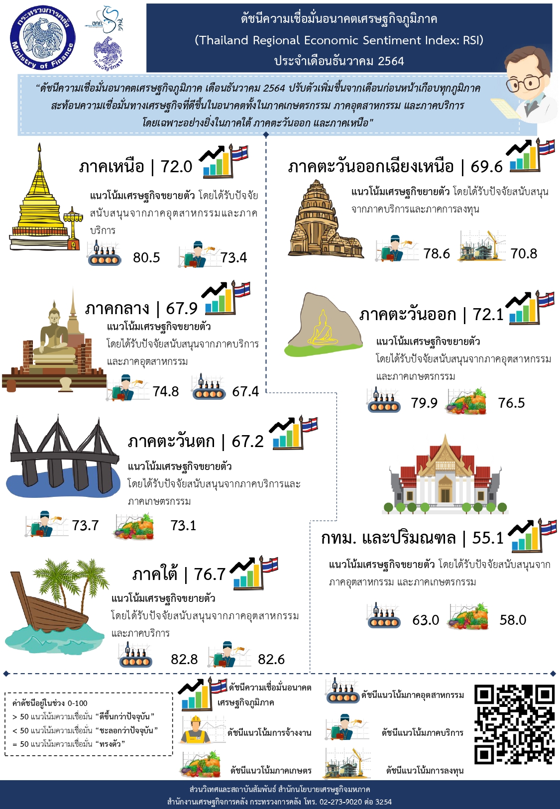 ดัชนีความเชื่อมั่นอนาคตเศรษฐกิจภูมิภาค (Thai Regional Economic Sentiment Index: RSI) ประจำเดือนธันวา