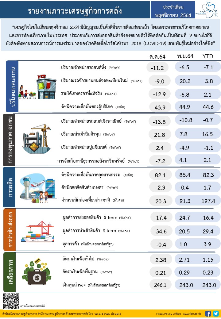 รายงานเศรษฐกิจการคลัง ประจำเดือน พฤศจิกายน 2564