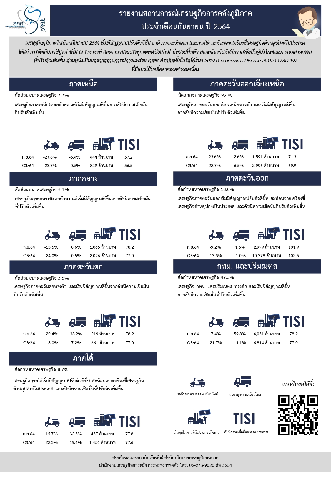 สถานการณ์เศรษฐกิจภูมิภาค ประจำเดือนกันยายน 2564