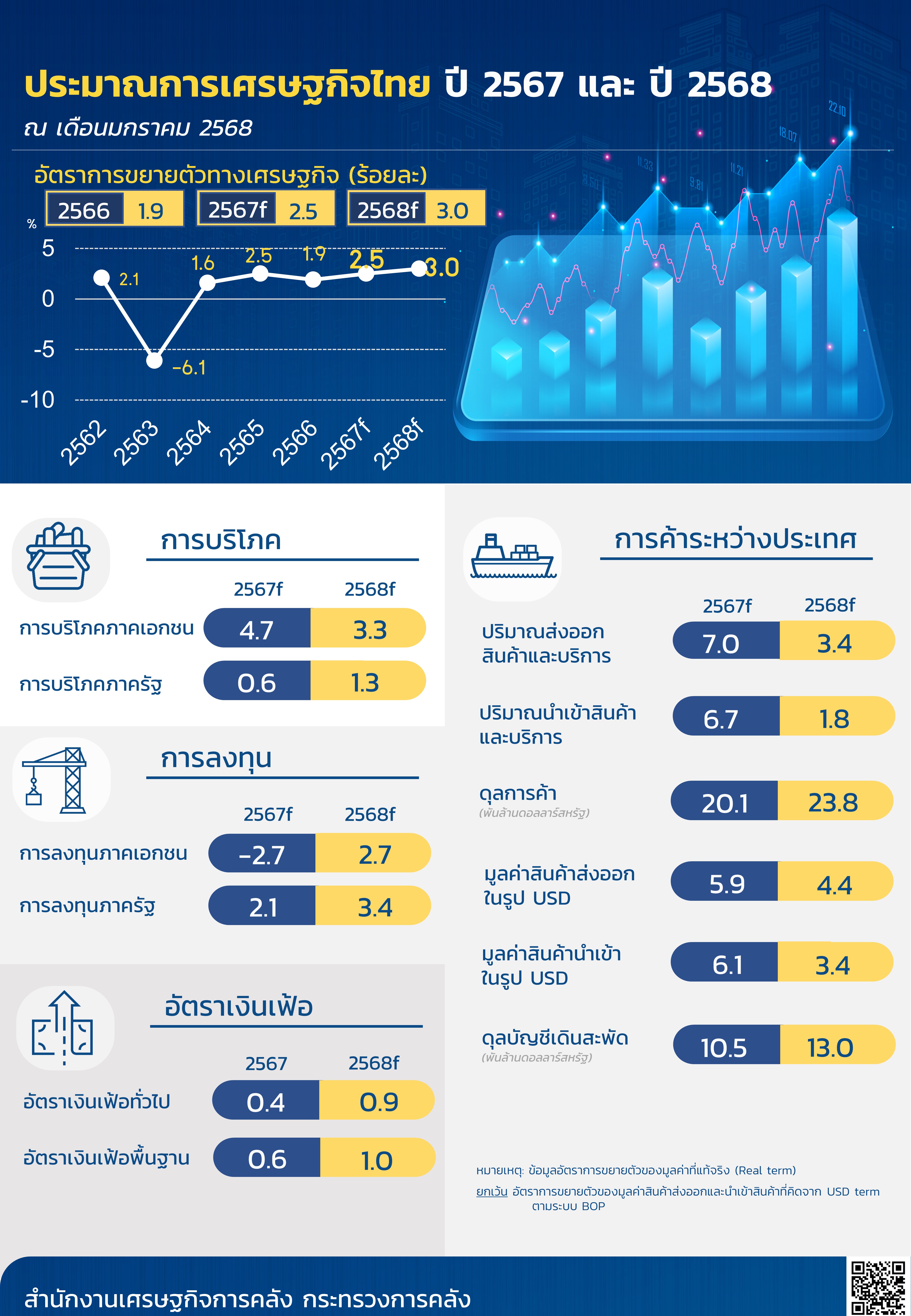 ประมาณการเศรษฐกิจไทยปี 2567 และ 2568 ประจำเดือนมกราคม 2568