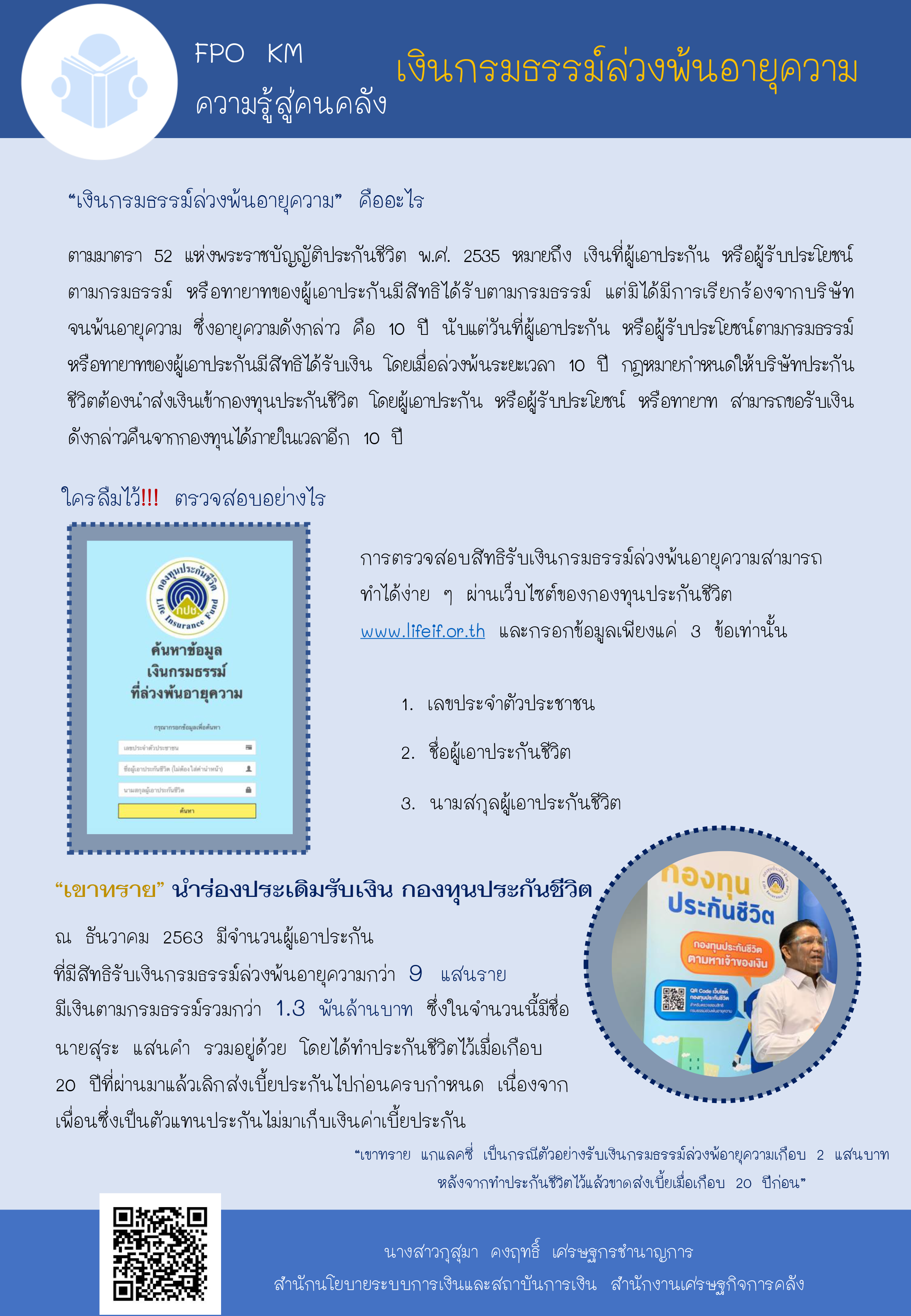 ความรู้สู่คนคลัง - เงินกรมธรรม์ล่วงพ้นอายุความ