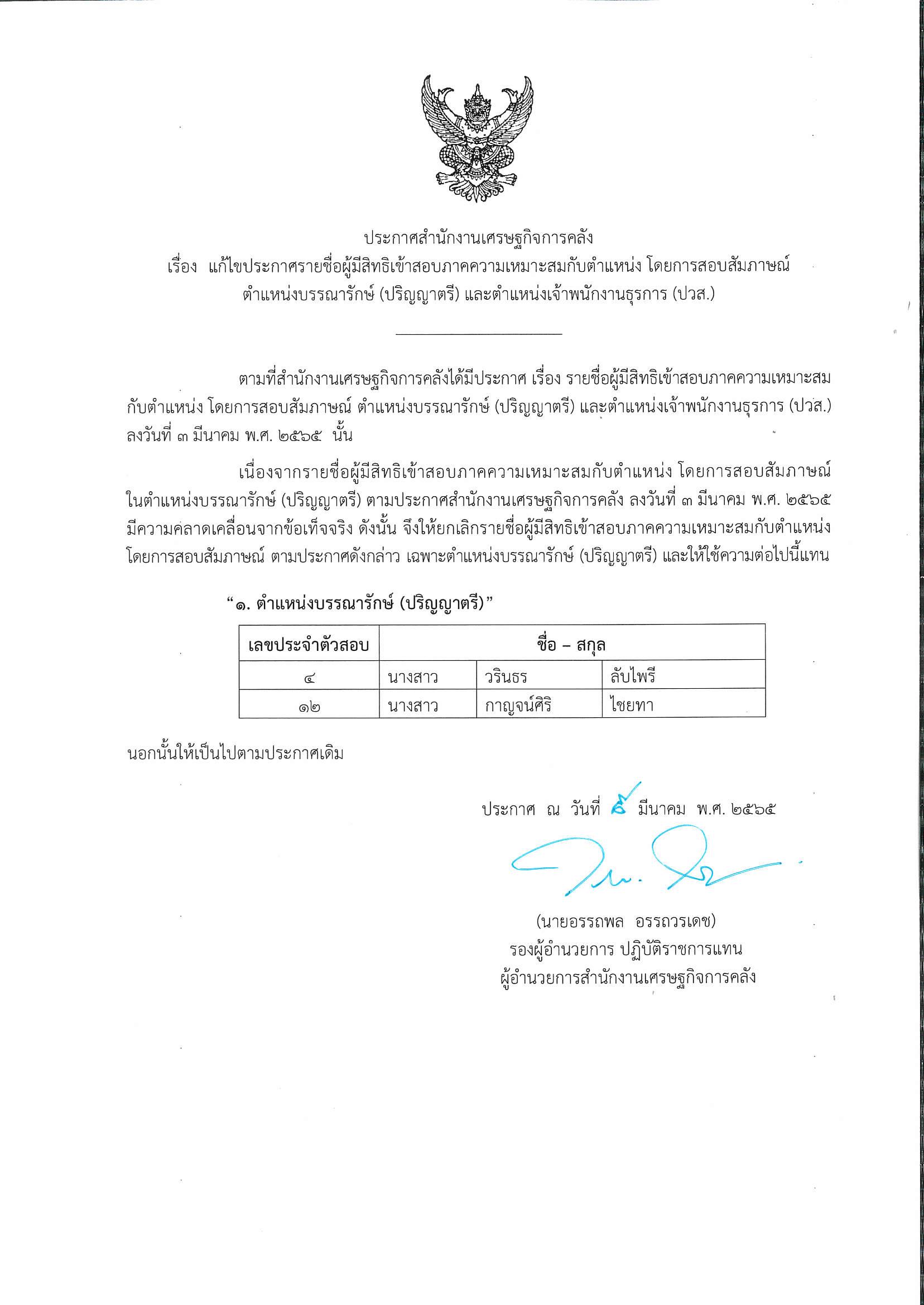 ประกาศแก้ไขรายชื่อผู้มีสิทธิเข้าสอบความเหมาะสมกับตำแหน่ง โดยการสอบสัมภาษณ์ ตำแหน่งบรรณารักษ์ (ปริญญาตร๊) และตำแหน่งเจ้าพนักงานธุรการ (ปวส.)