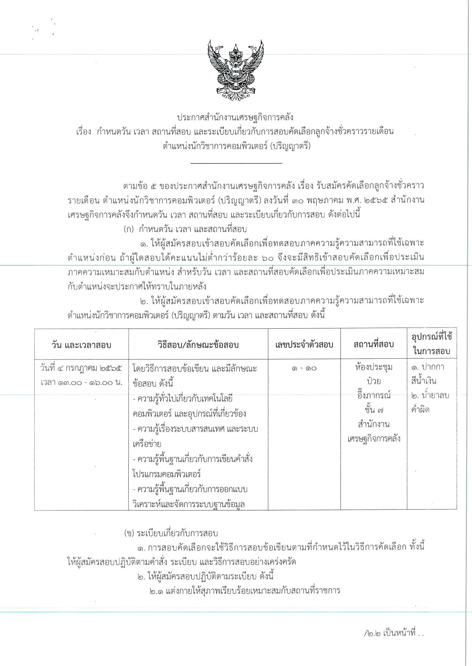 ประกาศกำหนดวัน เวลา สถานที่สอบ และระเบียบเกี่ยวกับการสอบคัดเลือกลูกจ้างชั่วคราวรายเดือน ตำแหน่งนักวิชาการคอมพิวเตอร์ (ปริญญาตรี)