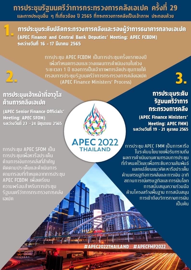 การเป็นเจ้าภาพจัดการประชุมรัฐมนตรีว่าการกระทรวงการคลังเอเปค (APEC Finance Ministers’ Meeting: APEC FMM) ครั้งที่ 29 และการประชุมอื่น ๆ ที่เกี่ยวข้อง ปี 2565