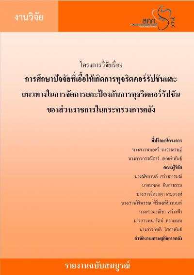 การศึกษาปัจจัยที่เอื้อให้เกิดการทุจริตคอรัปชันและแนวทางในการจัดการและป้องกันการทุจริตคอร์รัปชันของส่วนราชการในกระทรวงการคลัง