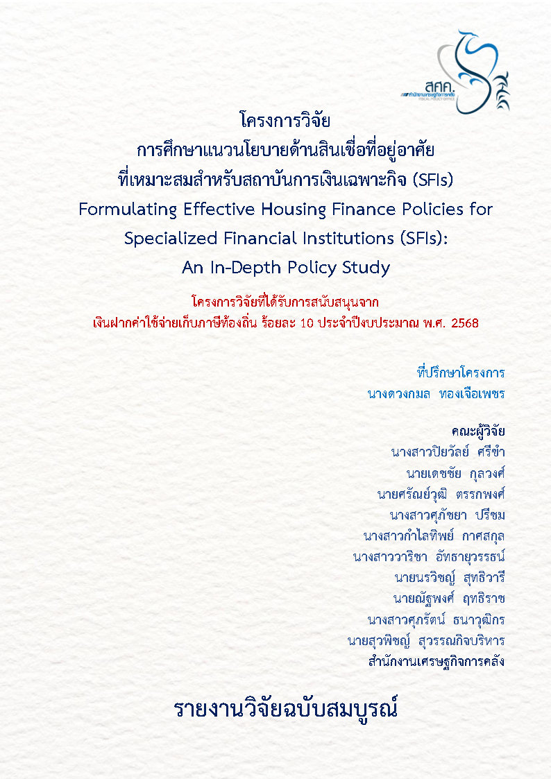 โครงการวิจัย เรื่อง การศึกษาแนวนโยบายด้านสินเชื่อที่อยู่อาศัยที่เหมาะสมสาหรับสถาบันการเงินเฉพาะกิจ (SFIs) (Formulating Effective Housing Finance Policies for Specialized Financial Institutions (SFIs):
