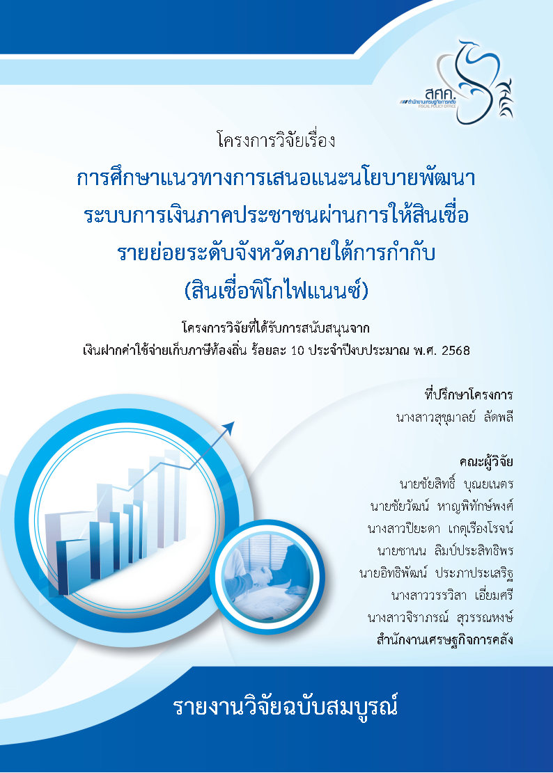 โครงการวิจัย เรื่อง การศึกษาแนวทางการเสนอแนะนโยบายพัฒนาระบบการเงินภาคประชาชนผ่านการให้สินเชื่อรายย่อย ระดับจังหวัดภายใต้การก ากับ (สินเชื่อพิโกไฟแนนซ์)(The Study of Policy Recommendations for the Deve