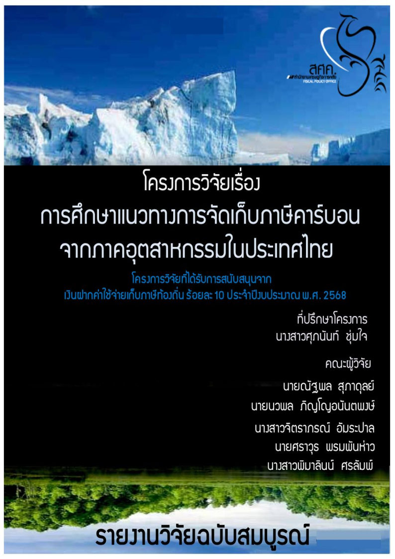 โครงการวิจัย เรื่อง การศึกษาแนวทางการจัดเก็บภาษีคาร์บอนจากภาคอุตสาหกรรมในประเทศไทย (The Study of Thailand Carbon Taxation on Industry Sector)(เงินภาษีท้องถิ่น 10%)