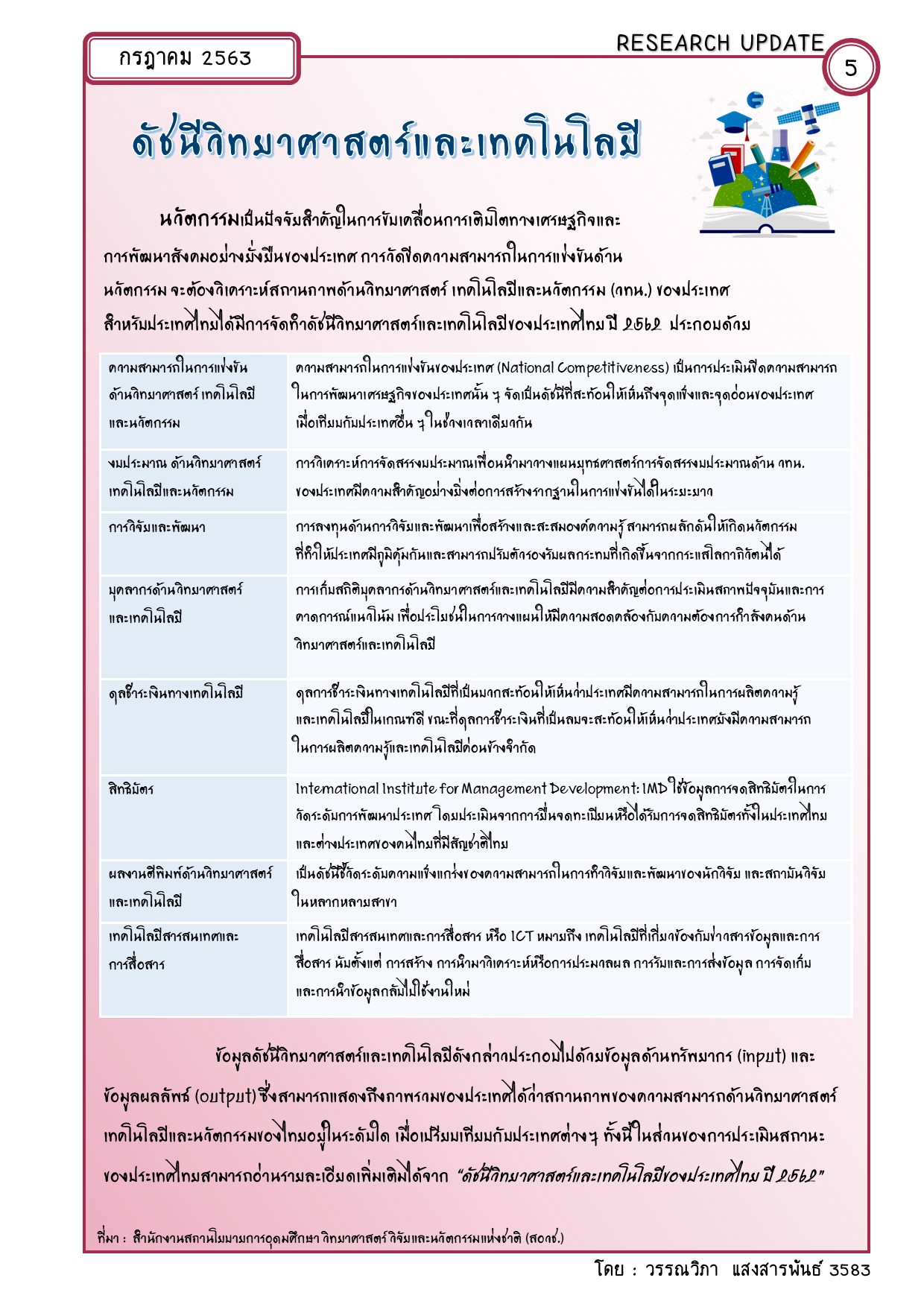 ประจำเดือน กรกฎาคม 2563 เรื่อง ดัชนีวิทยาศาสตร์และเทตโนโลยี