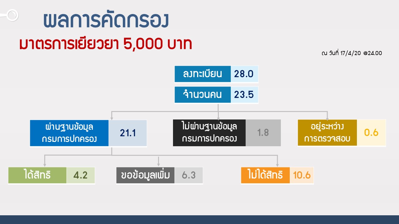 แถลงข่าว กค. ฉบับที่ 043/2563 เรื่อง ผลการคัดกรองมาตรการเยียวยา 5,000 บาท ลงวันที่ 20 เมษายน 2563