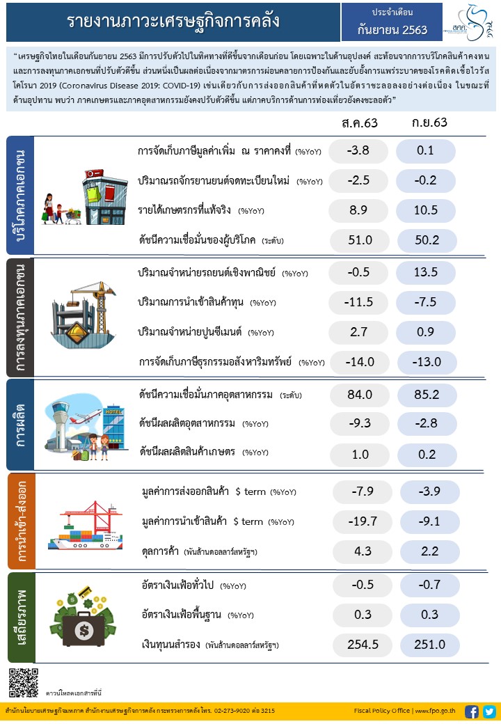แถลงข่าว สศค. ฉบับที่ 31/2563 เรื่อง รายงานภาวะเศรษฐกิจการคลังประจำเดือนกันยายน 2563