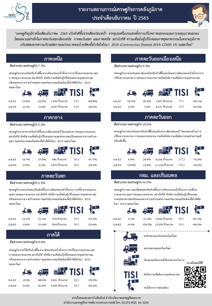 แถลงข่าว สศค. ฉบับที่ 3/2564 เรื่อง รายงานภาวะเศรษฐกิจการคลังภูมิภาคประจำเดือนธันวาคม 2563