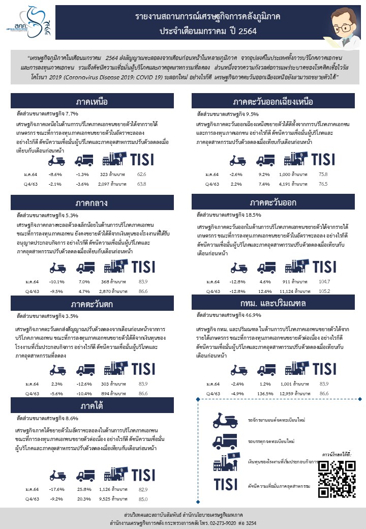 แถลงข่าว สศค. ฉบับที่ 7/2564 เรื่อง รายงานภาวะเศรษฐกิจการคลังภูมิภาคประจำเดือนมกราคม 2564