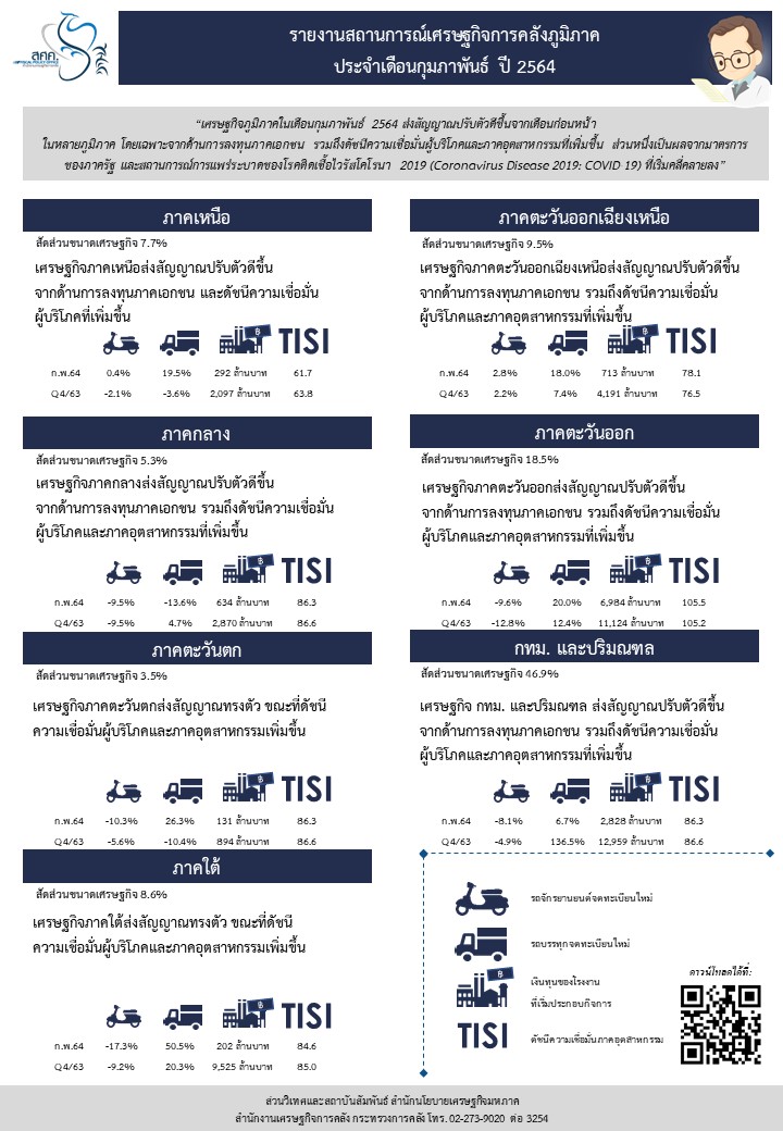 แถลงข่าว สศค. ฉบับที่ 012/2564 เรื่อง รายงานภาวะเศรษฐกิจการคลังภูมิภาคประจำเดือนกุมภาพันธ์ 2564