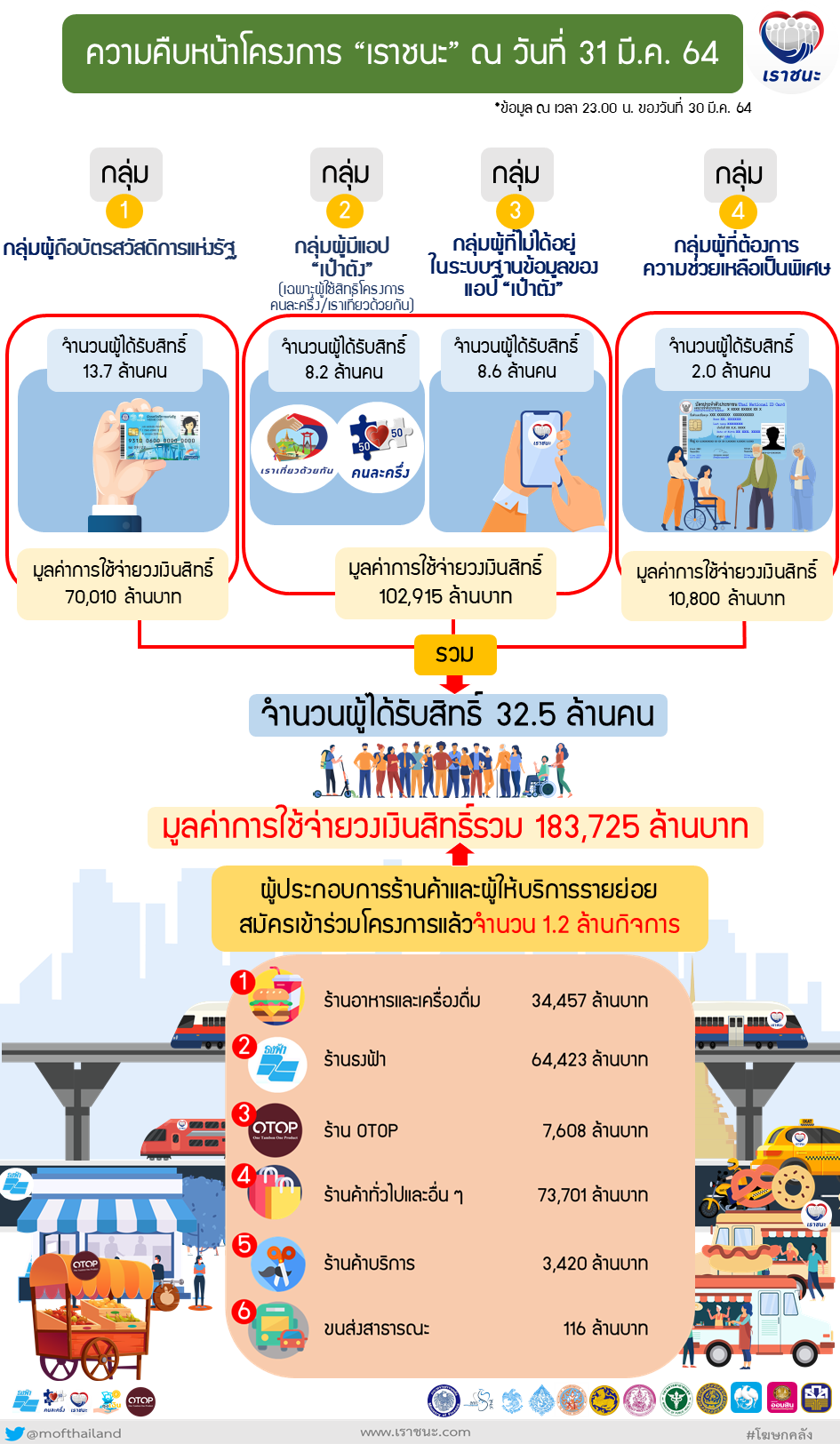 แถลงข่าว กค. ฉบับที่ 076/2564 เรื่อง การขอความร่วมมือประชาชนและผู้ประกอบการปฏิบัติตามเงื่อนไขโครงการเราชนะ