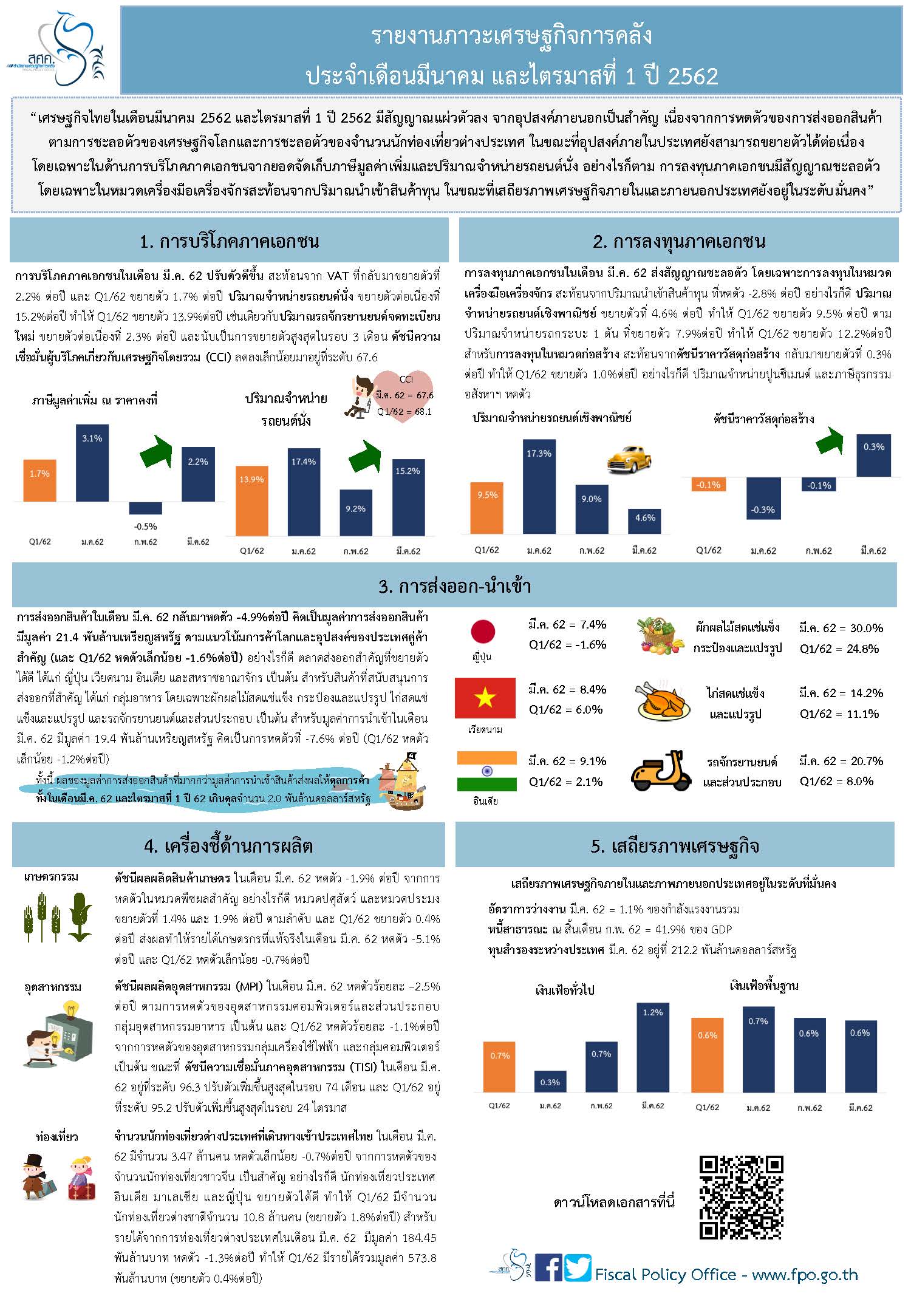 รายงานเศรษฐกิจการคลัง ประจำเดือน มีนาคม 2562