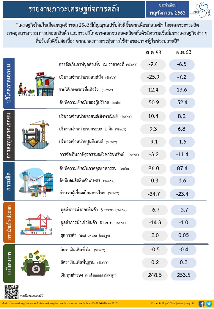 รายงานเศรษฐกิจการคลัง ประจำเดือน พฤศจิกายน 2563
