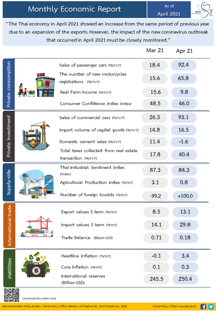 รายงานเศรษฐกิจการคลัง ประจำเดือน เมษายน 2564