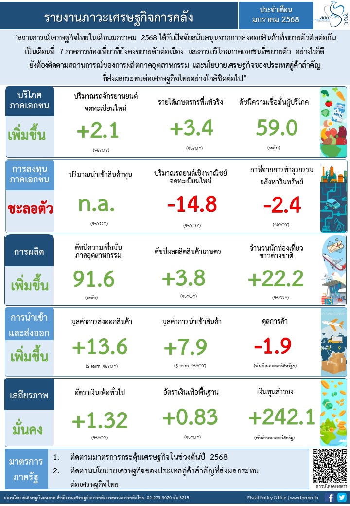 รายงานสภาวะเศรษฐกิจการคลัง ประจำเดือน มกราคม 2568