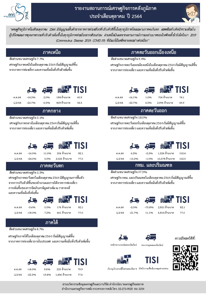 สถานการณ์เศรษฐกิจภูมิภาค ประจำเดือนตุลาคม 2564