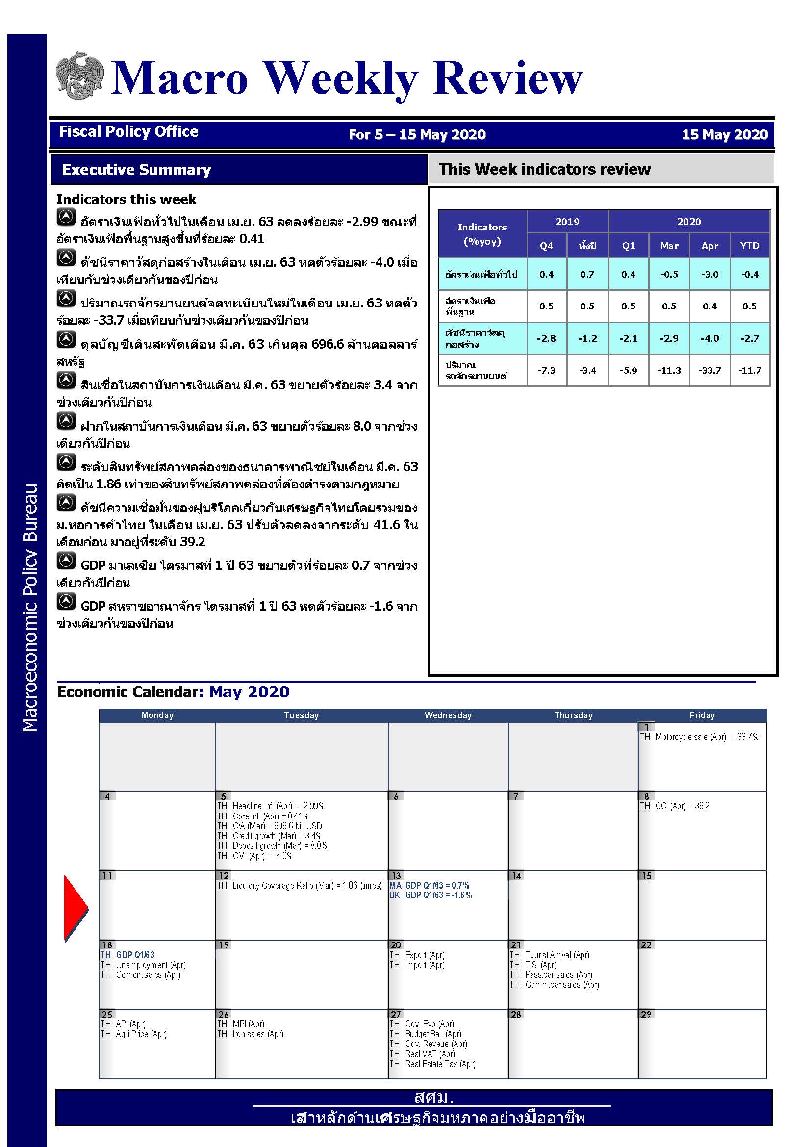 รายงานภาวะเศรษฐกิจประจำวันที่ 5 พ.ค. - 15 พ.ค. 2563