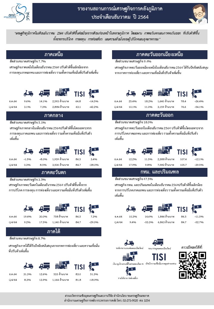 สถานการณ์เศรษฐกิจภูมิภาค ประจำเดือนธันวาคม 2564
