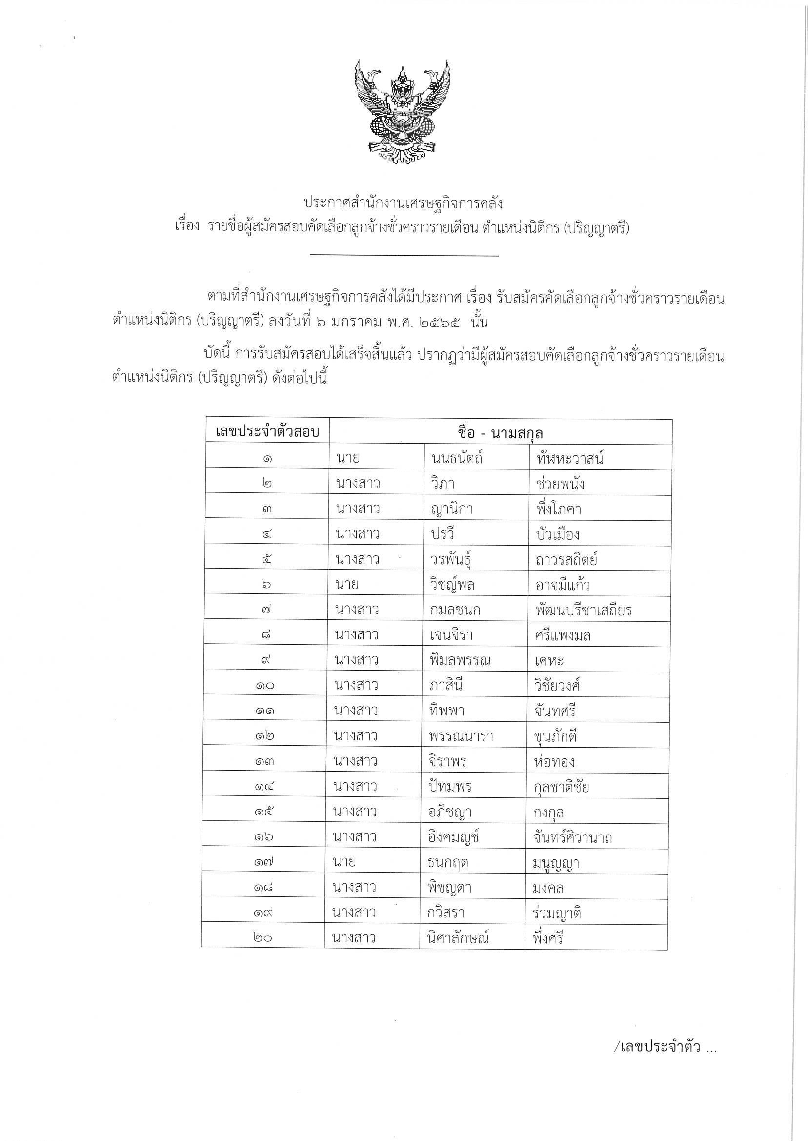 ประกาศรายชื่อผู้สมัครสอบคัดเลือกลูกจ้างชั่วคราวรายเดือน ตำแหน่งนิติกร (ปริญญาตรี)