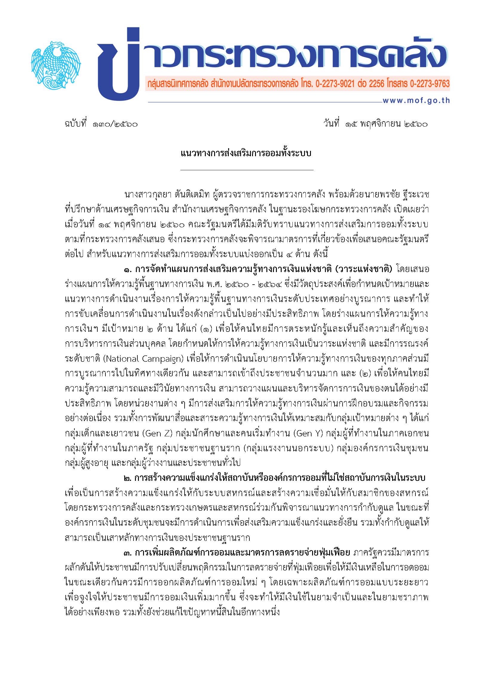 แถลงข่าว กค. ฉบับที่ 179/2561 ลงวันที่ 26 ธ.ค. 2561 เรื่อง เป้าหมายของนโยบายการเงิน ประจำปี 2562