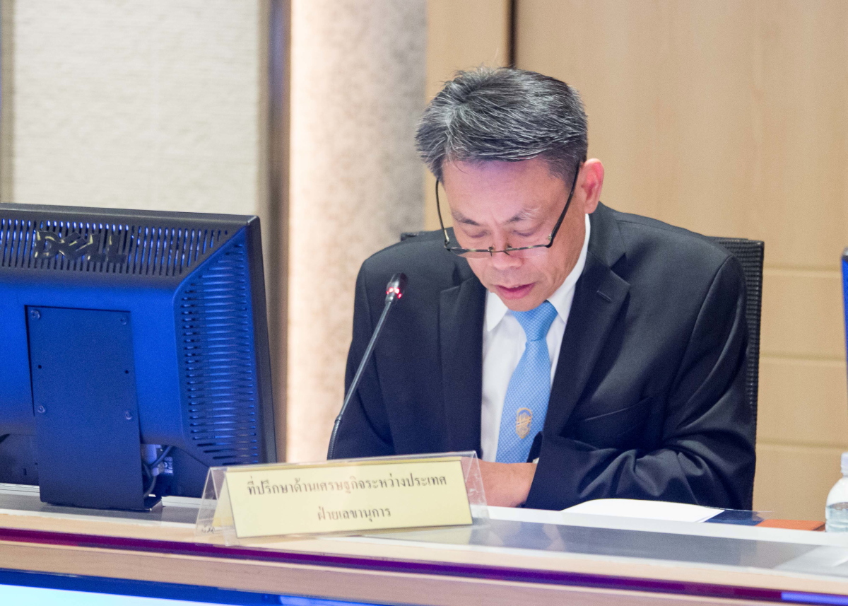 นายวโรทัย โกศลพิศิษฐ์กุล ที่ปรึกษาด้านเศรษฐกิจการคลัง สำนักงานเศรษฐกิจการคลัง เป็นประธานการประช...