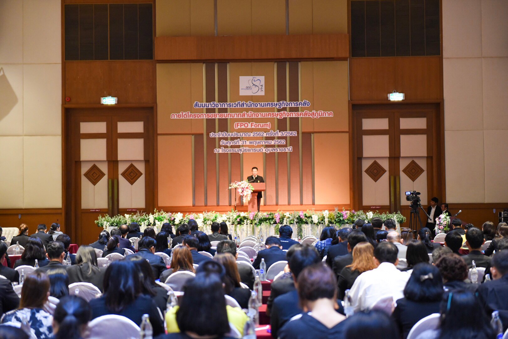 นายลวรณ แสงสนิท ผู้อำนวยการสำนักงานเศรษฐกิจการคลัง เป็นประธานกล่าวเปิดการสัมมนาวิชาการเวทีสำนักงานเศรษฐกิจการคลัง (FPO Forum) ภายใต้โครงการขยายบทบาทสำนักงานเศรษฐกิจการคลังสู่ภูมิภาคประจำปีงบประมาณ 2562 ครั้งที่ 3/2562 โดยมีนายสฤษดิ์ วิฑูรย์ ผู้ว่าราชการจังหวัดอุบลราชธานี กล่าวต้อนรับ ณ ห้องทับทิมสยาม 3 โรงแรมสุนีย์ แกรนด์ โอเทล แอนด์ คอนเวนชั่น เซ็นเตอร์ จังหวัดอุบลราชธานี เมื่อวันที่ 31 พฤษภาคม 2562