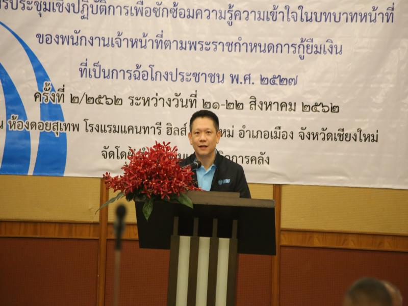 นายลวรณ แสงสนิท ผู้อำนวยการสำนักงานเศรษฐกิจการคลัง เป็นประธานกล่าวเปิดการประชุมเชิงปฏิบัติการเพื่อซักซ้อมความรู้ความเข้าใจในบทบาทหน้าที่ของพนักงานเจ้าหน้าที่ตามพระราชกำหนดการกู้ยืมเงินที่เป็นการฉ้อโกงประชาชน พ.ศ. 2527 ครั้งที่ 2/2562 ณ ห้องดอยสุเทพ โรงแรมแคนทารี ฮิลล์ เชียงใหม่ อำเภอเมือง จังหวัดเชียงใหม่ ระหว่างวันที่ 21-22 สิงหาคม 2562