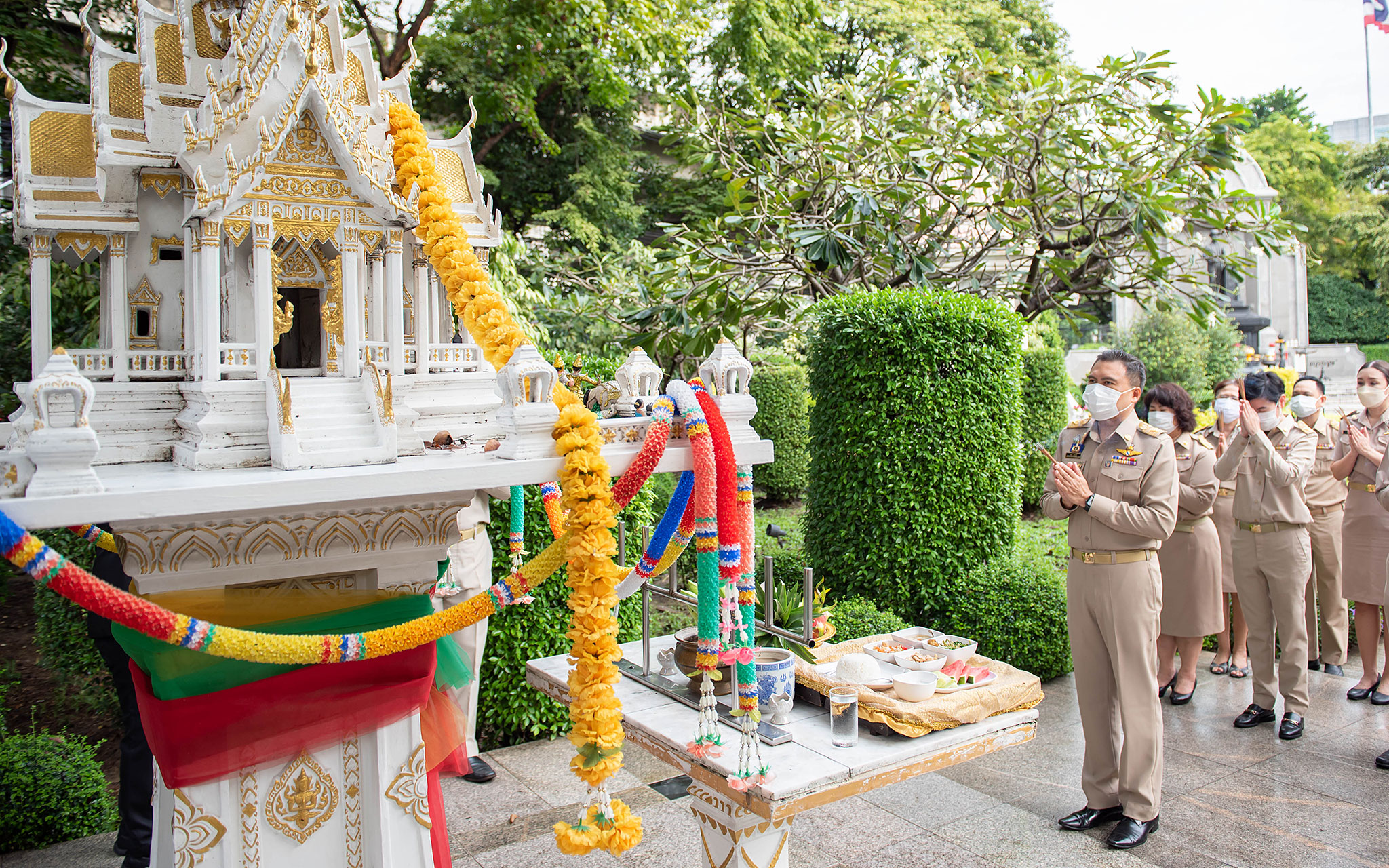 นายพรชัย ฐีระเวช ผู้อำนวยการสำนักงานเศรษฐกิจการคลัง พร้อมด้วยผู้บริหาร และบุคลากรของสำนักงานเศรษฐกิจการคลัง ร่วมสักการะสิ่งศักดิ์สิทธิ์ประจำกระทรวงการคลัง เนื่องในโอกาสครบรอบวันสถาปนาสำนักงานเศรษฐกิจการคลัง ปีที่ 60 ณ กระทรวงการคลัง เมื่อวันที่ 18 ตุลาคม 2564