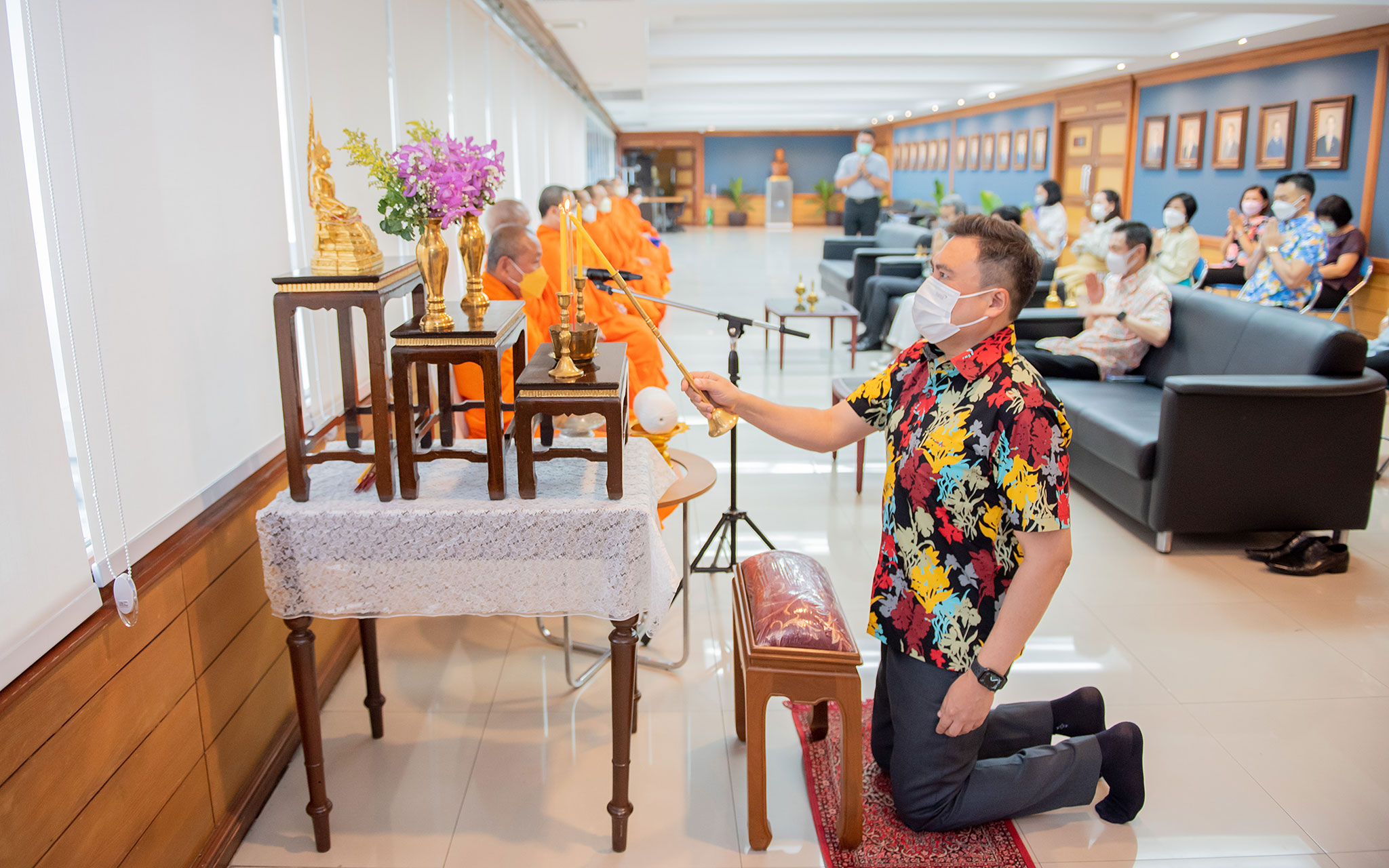นายพรชัย ฐีระเวช ผู้อำนวยการสำนักงานเศรษฐกิจการคลัง พร้อมด้วยผู้บริหาร และบุคลากรสำนักงานเศรษฐกิจการคลัง ร่วมพิธีทำบุญตักบาตรสืบสานประเพณีสงกรานต์ และสรงน้ำพระพุทธรูป ณ บริเวณชั้น 1 อาคารสำนักงานเศรษฐกิจการคลัง เมื่อวันที่ 12 เมษายน 2565