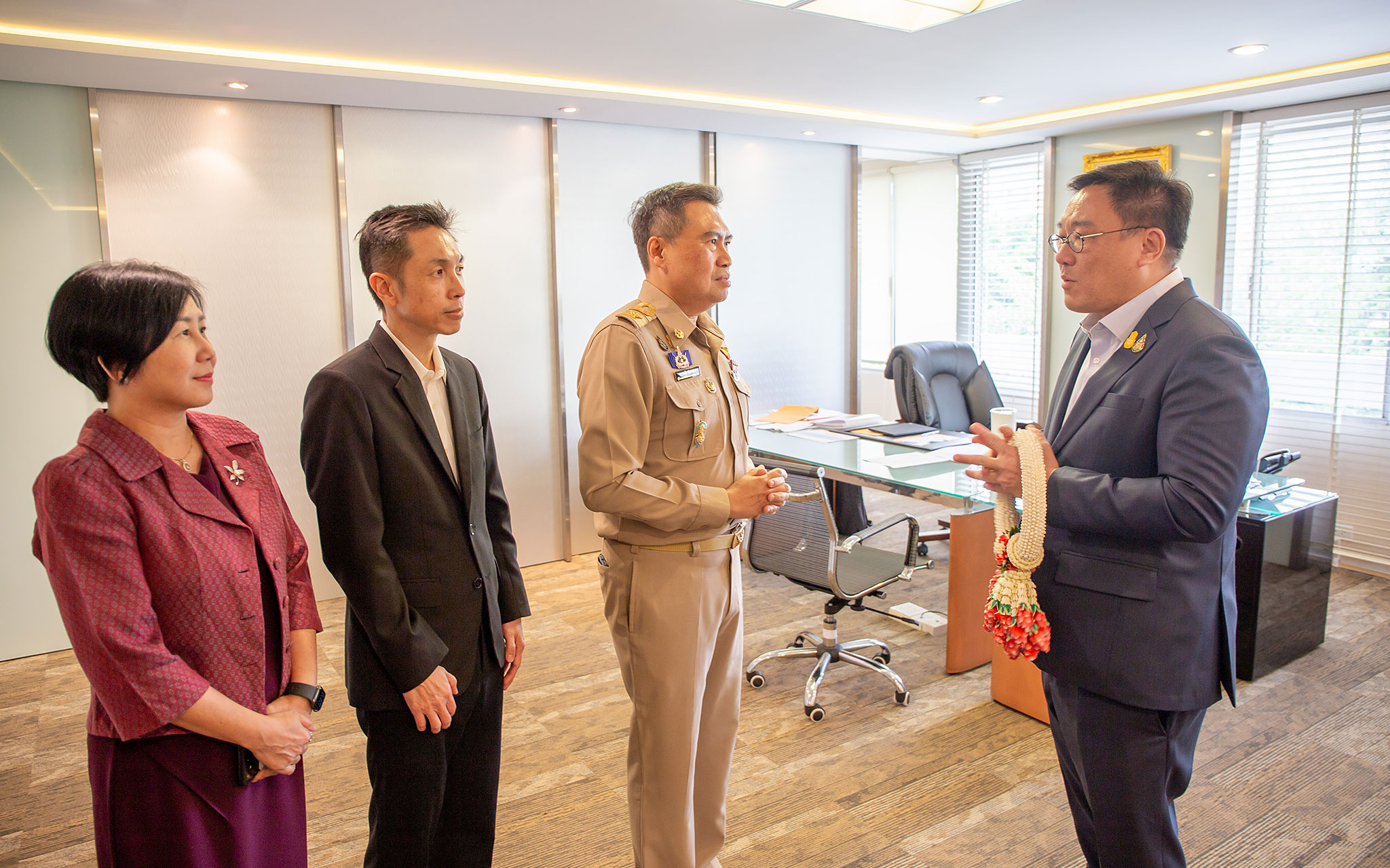 นายพรชัย ฐีระเวช ผู้อำนวยการสำนักงานเศรษฐกิจการคลัง พร้อมด้วยนายวุฒิพงศ์ จิตตั้งสกุล ที่ปรึกษาด้านเศรษฐกิจการคลัง สำนักงานเศรษฐกิจการคลัง และนางสาวสุมาลี สถิตชัยเจริญ รองผู้อำนวยการสำนักงานเศรษฐกิจการคลัง ร่วมแสดงความยินดีกับ นายจุลพันธ์ อมรวิวัฒน์ เนื่องในโอกาสได้รับพระบรมราชโองการโปรดเกล้าฯ ให้ดำรงตำแหน่งรัฐมนตรีช่วยว่าการกระทรวงการคลัง ณ กระทรวงการคลัง เมื่อวันที่ 25 กันยายน 2566