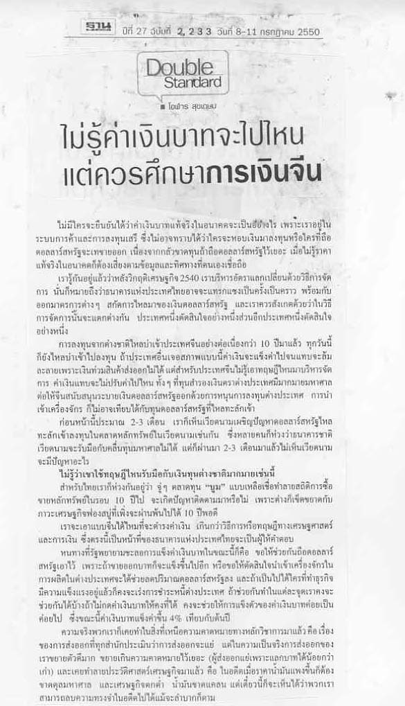 •สถาบันการเงินเฉพาะกิจควรจะเป็นแหล่งเงินทุนในการพัฒนาสินค้าให้กับผู้ประกอบการ SMEs ให้มีความเข้มแข็งและกิจการ OTOP ให้มีการขยายตัวมากขึ้น