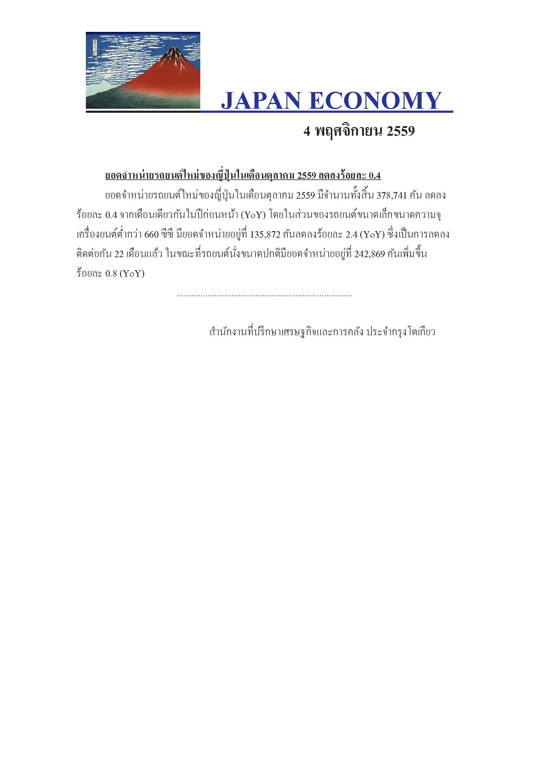 รายงานภาวะเศรษฐกิจญี่ปุ่น ประจำวันที่ 4 พ.ย. 59