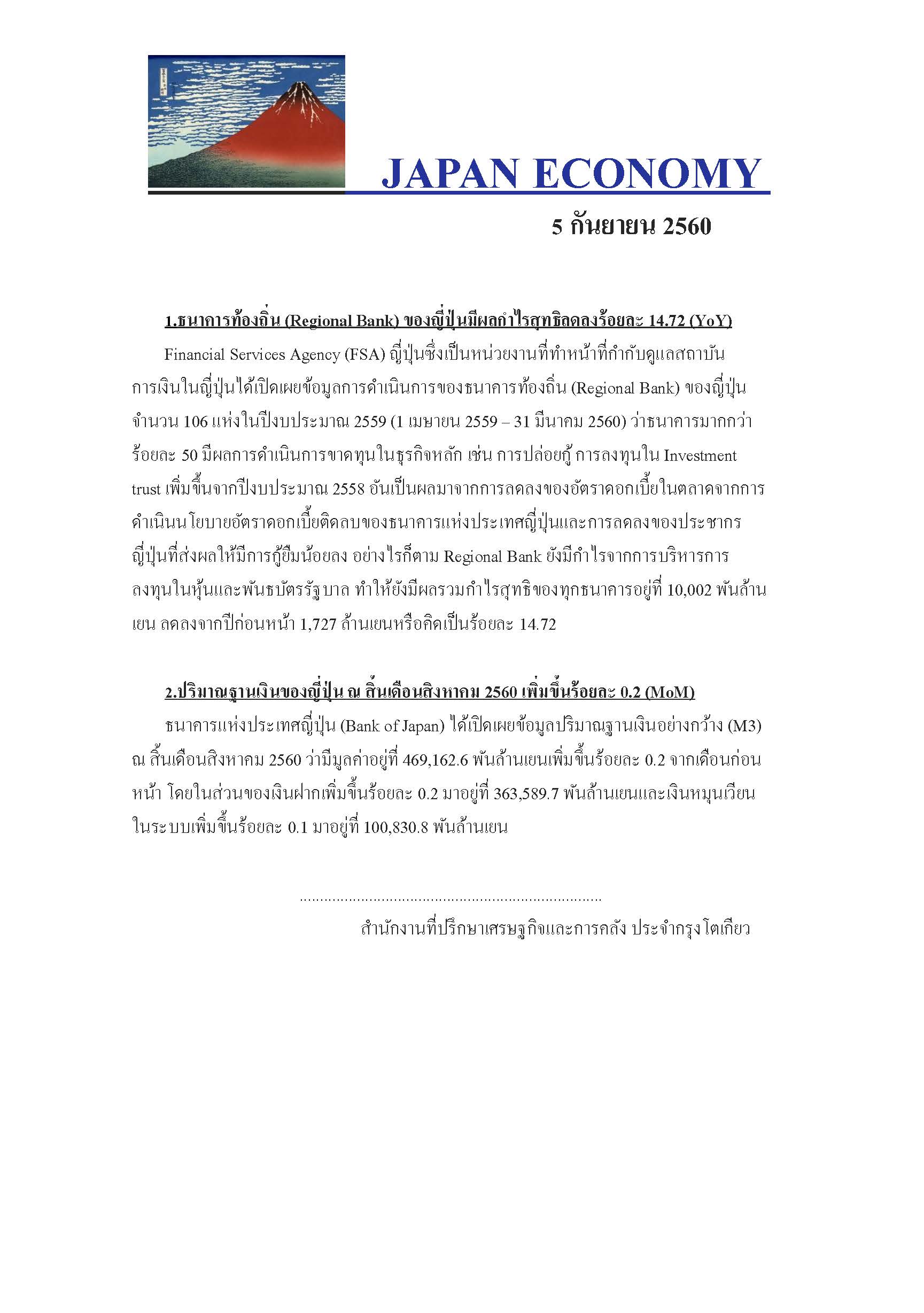 รายงานภาวะเศรษฐกิจญี่ปุ่น ประจำวันที่ 5 ก.ย. 60 (117 กิโลไบต์)