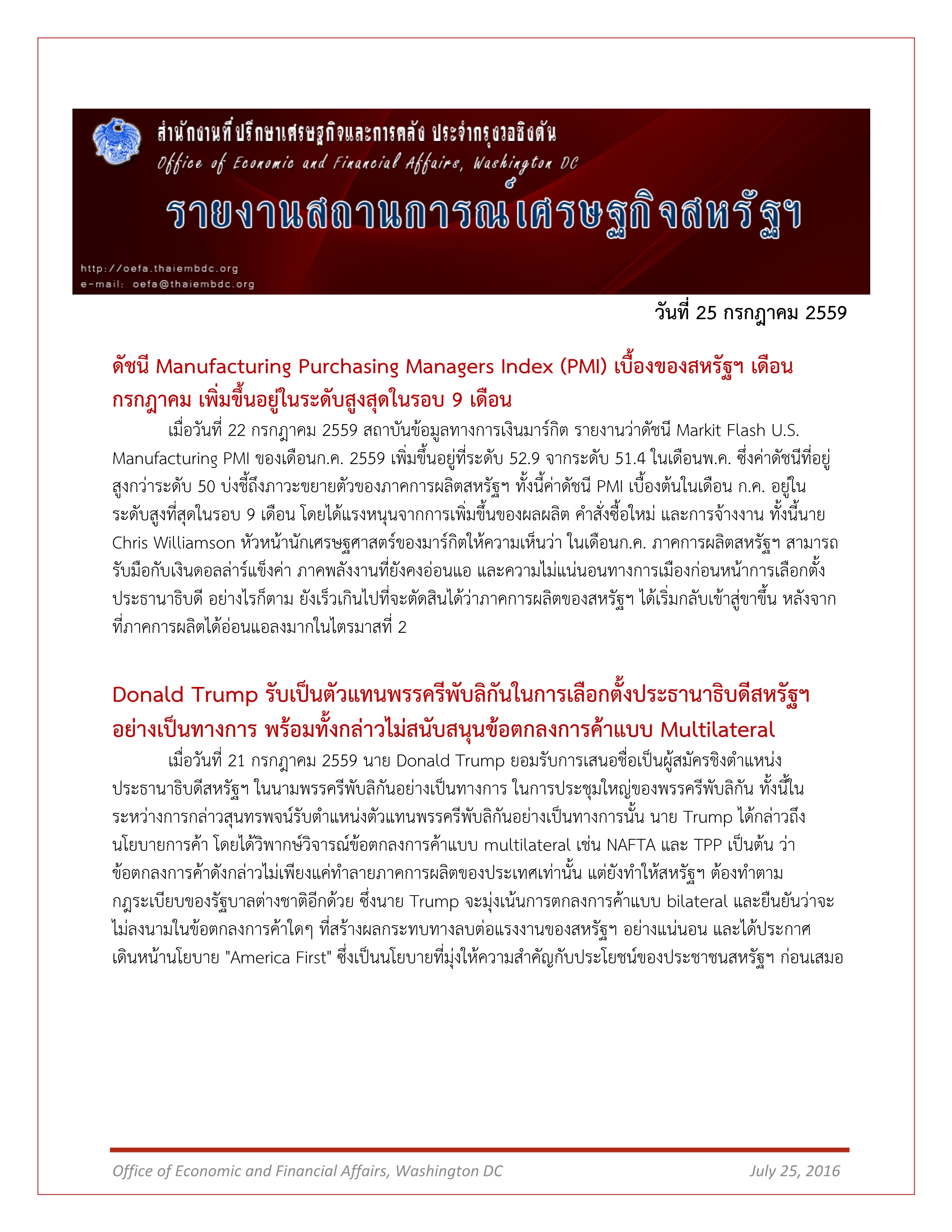 รายงานสถานการณ์เศรษฐกิจสหรัฐฯ ประจำวันที่ 25 ก.ค. 59 (313 กิโลไบต์)