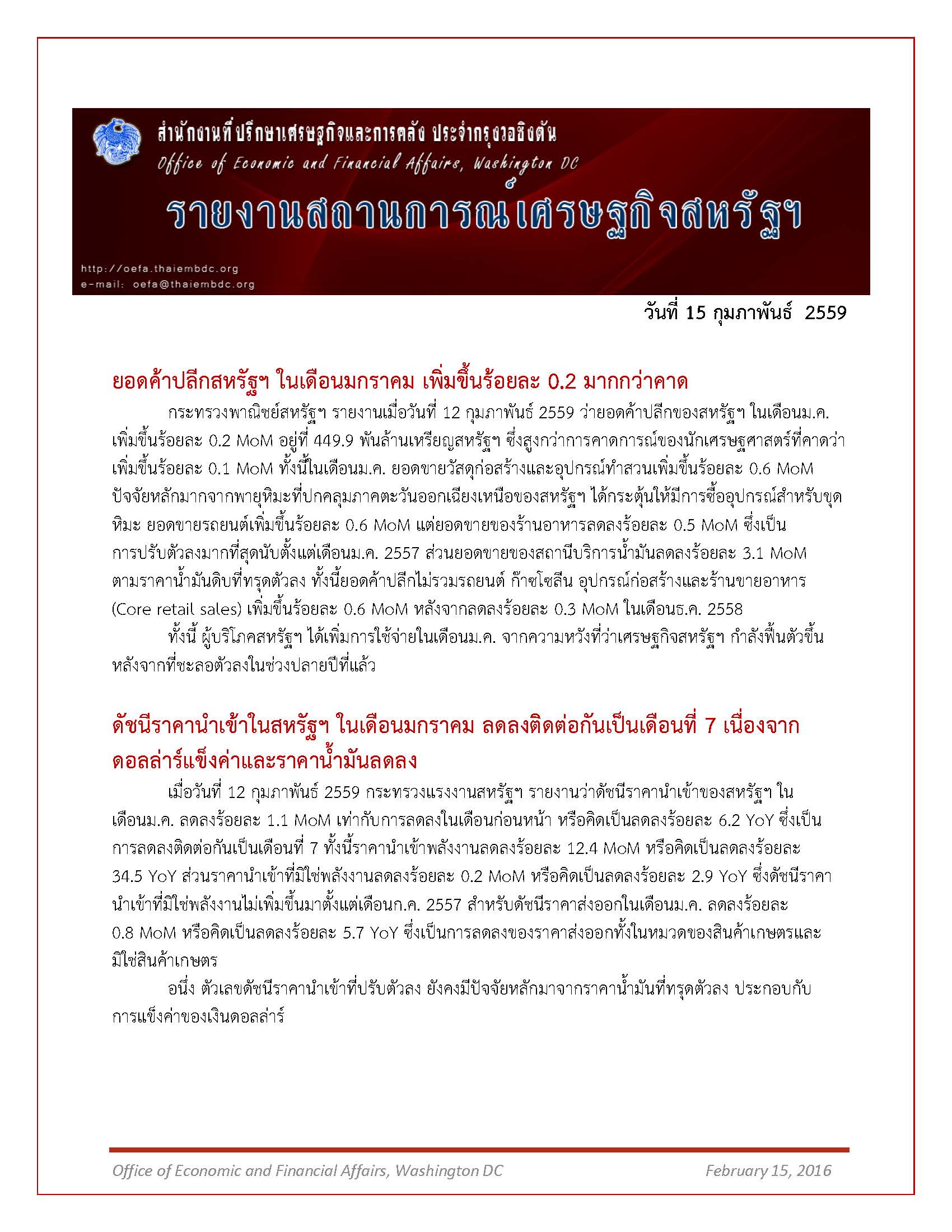 รายงานสถานการณ์เศรษฐกิจสหรัฐฯ ประจำวันที่ 15 ก.พ. 59 (317 กิโลไบต์)